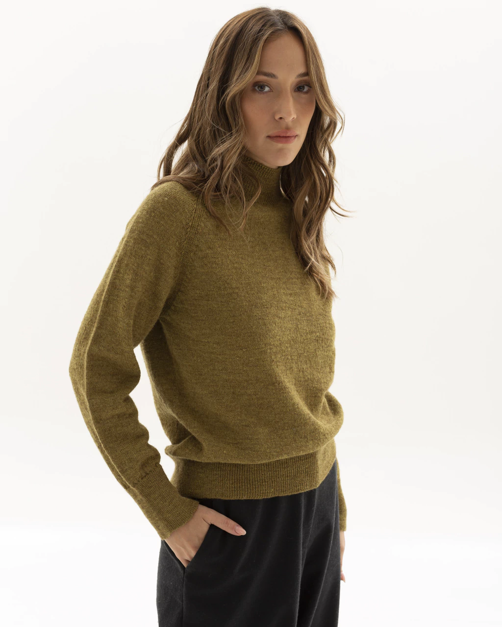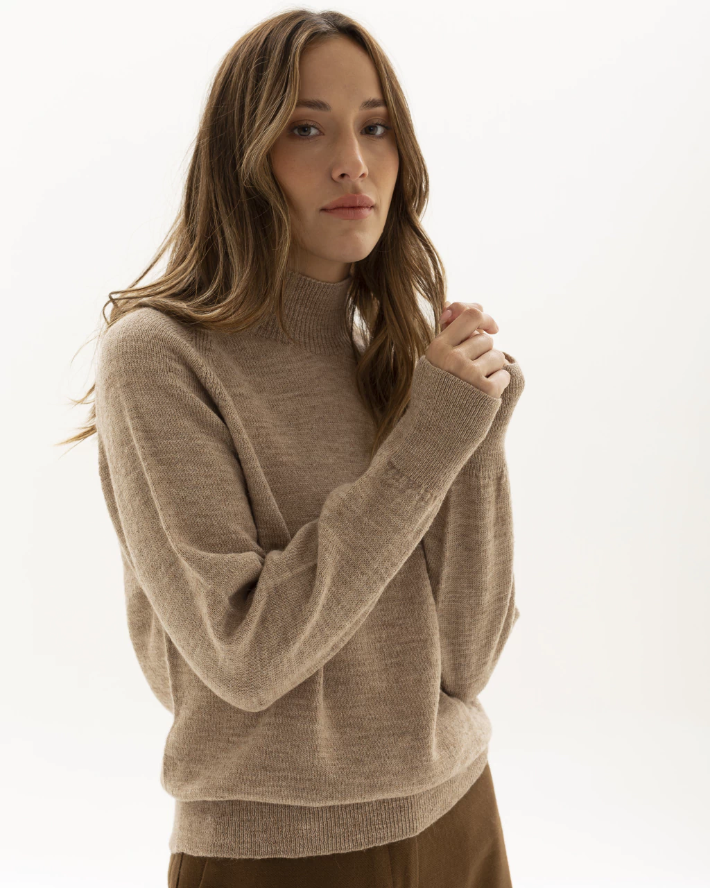 Polera tejida en prenda completa sin costuras en blend de llama baby con lana merino. Es una prenda muy abrigada y liviana. Calce al cuerpo.